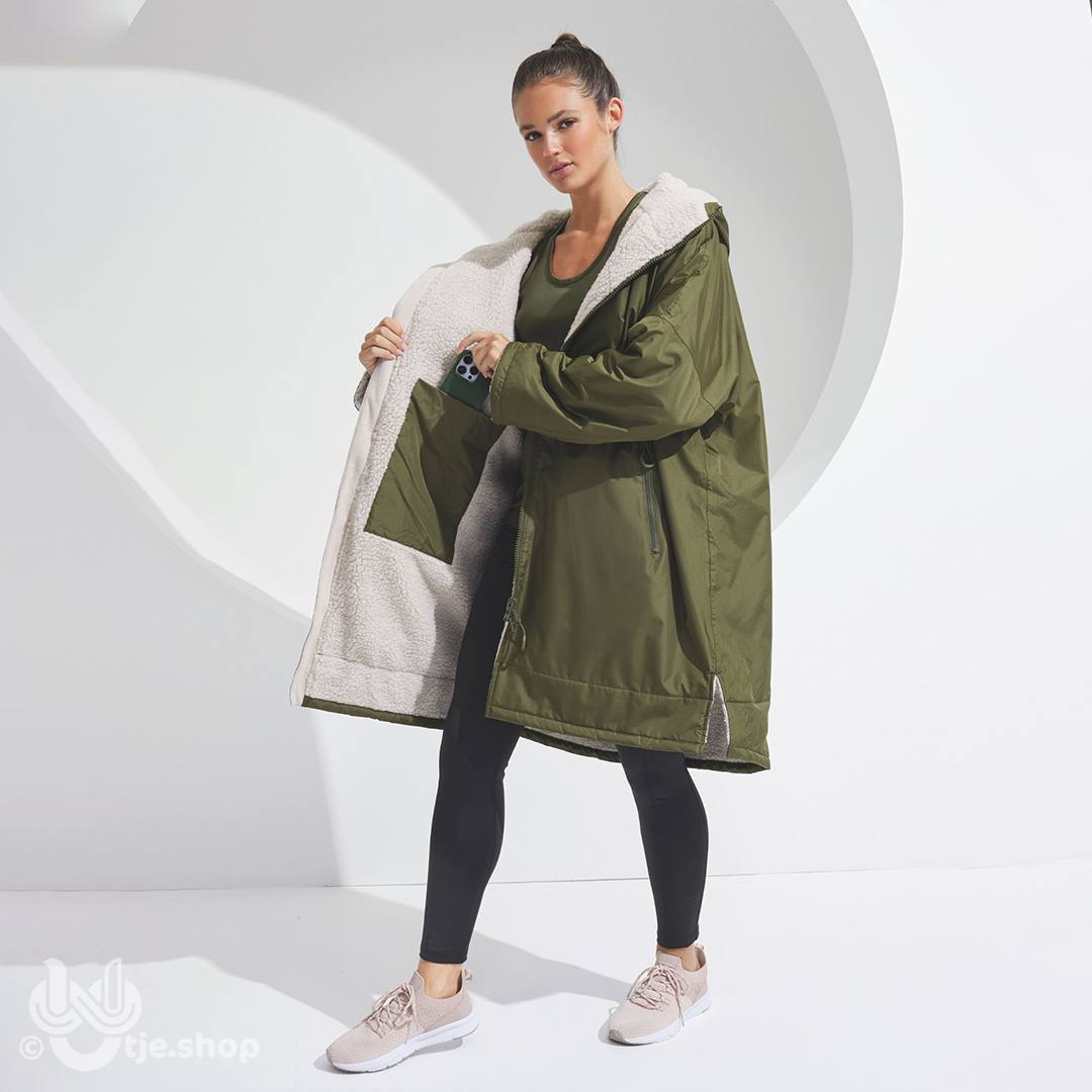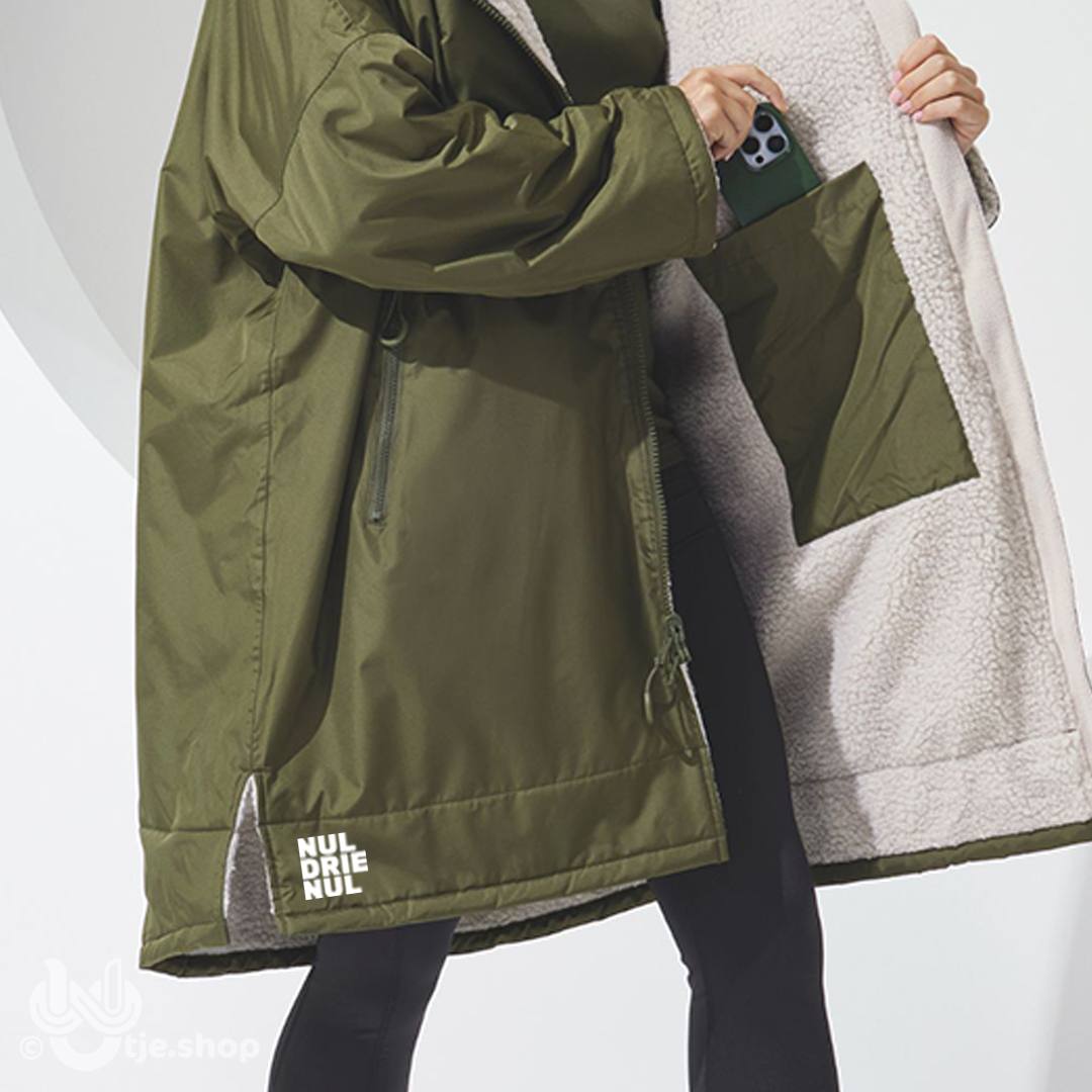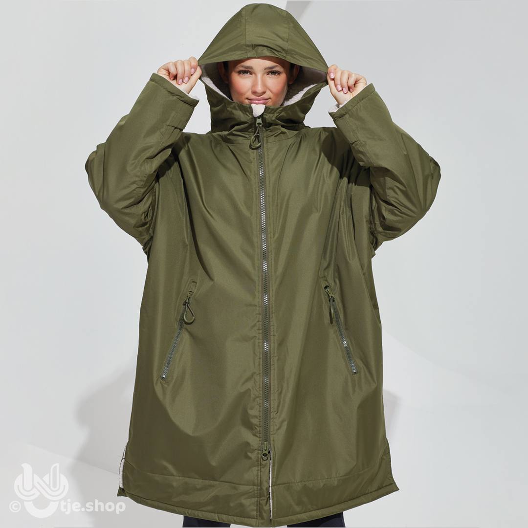 Een waterdichte jas met capuchon om je warm en droog te houden, met verstelbare bandjes aan de polsen en kin beschermer om de warmte vast te houden op winderige dagen. De behaaglijke sherpa-fleece binnen voering absorbeert vocht en houdt je warm, waardoor dit een geweldig kledingstuk is na wateractiviteiten of regenachtige dagen op het voetbalveld. Deze oversized jas is ideaal bij het aantrekken van warme, droge kleren en heeft een dubbele ritssluiting – dus meer bewegingsvrijheid! Met meerdere diepe zakken aan de binnen- en buitenkant is hij niet alleen perfect voor sporters, maar ook voor woon-werkverkeer in de regen of een ijzige wandelingen met de hond.
